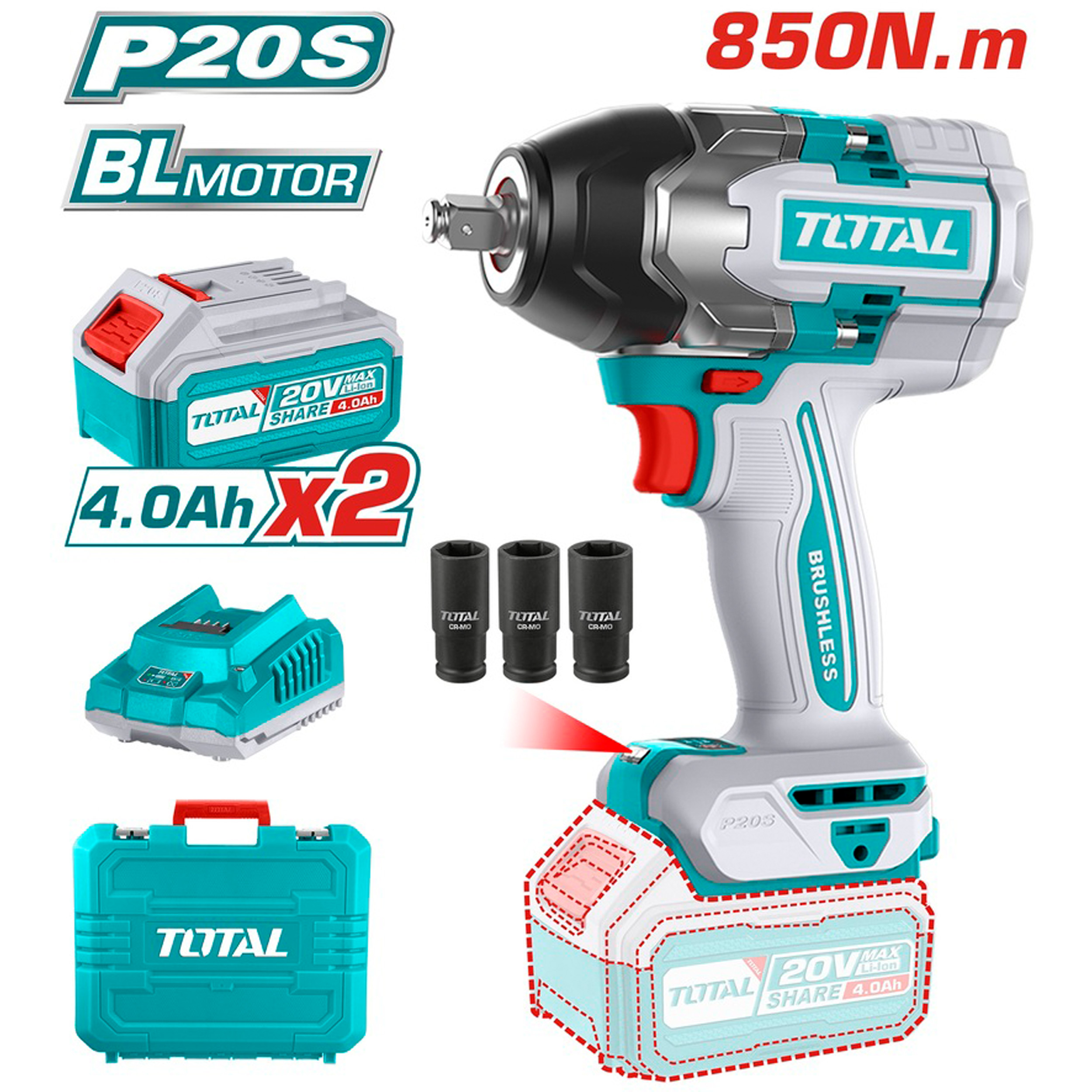 Total Επαγγελματικό Μπουλονόκλειδο 20V 1/2″ 2 x 4.0Ah TIWLI2085