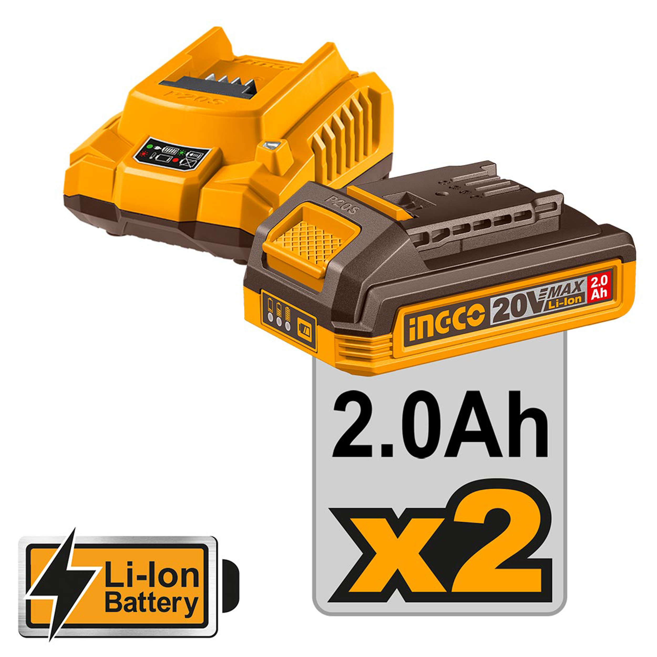 - 2 τεμ. Μπαταρίες 20V 2.0Ah Li-Ion (FBLI2001).
