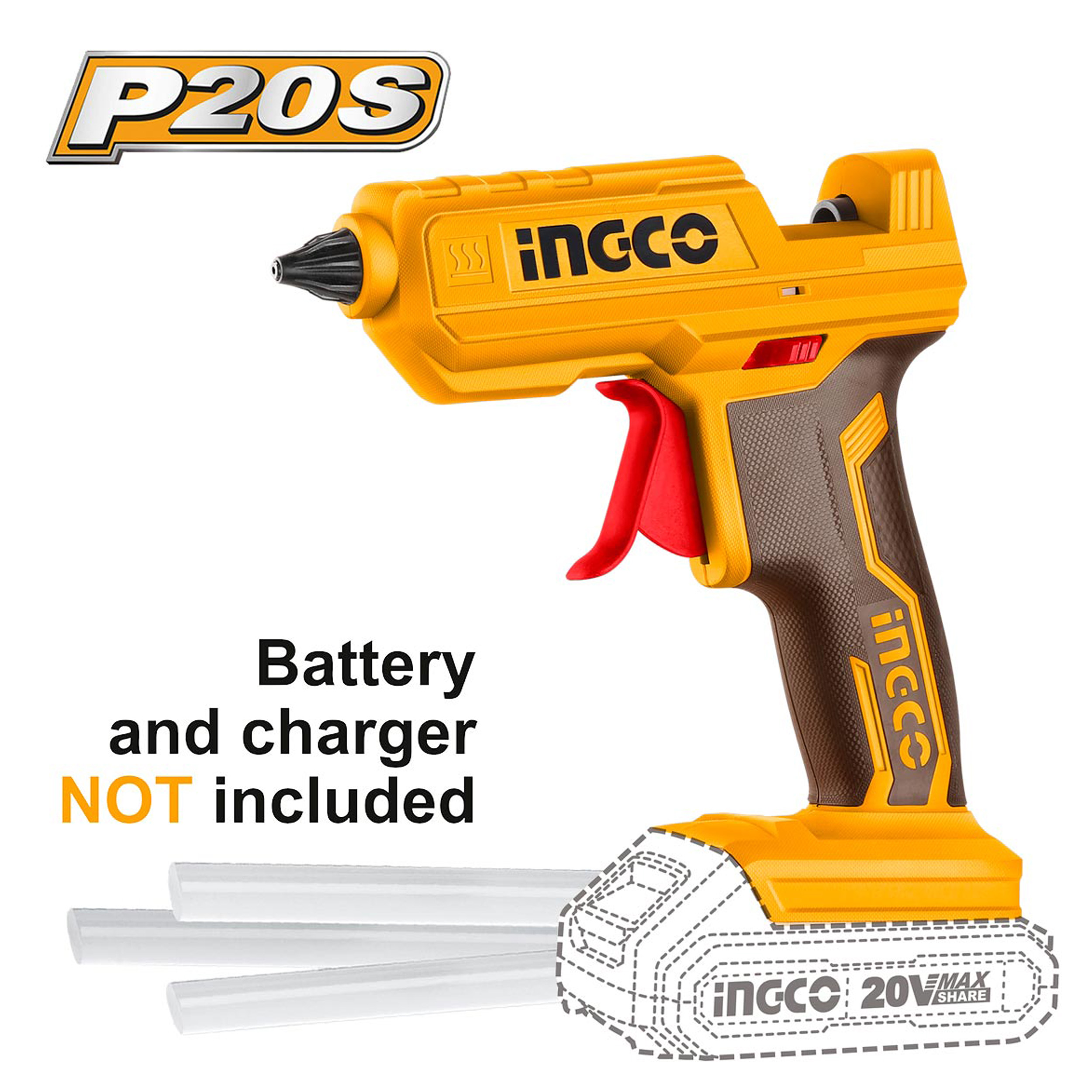 Ingco Πιστόλι Θερμόκολλας Μπαταρίας 20V Li-Ion Solo CGGLI2001